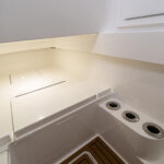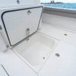 The V-33 was designed for maximum live well and fish box capacity. A standard 52-gallon transom live well anchors the cockpit, and five overboard-draining in-deck fish boxes from 32 to 98 gallons are strategically positioned so you’re never more than a half-step from a home for your catch. Choose from an array of fishing equipment and accessories to set up the V-33 for success in your waters and for your type of fishing. Case in point: Live bait anglers can add a second live well under the cockpit sole; on-deck live well inlet and discharge fittings can be installed in the transom corners; and the transom live well interior can be painted dark blue (to help sustain bait life).