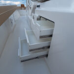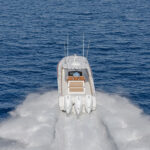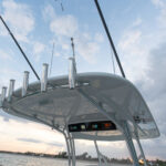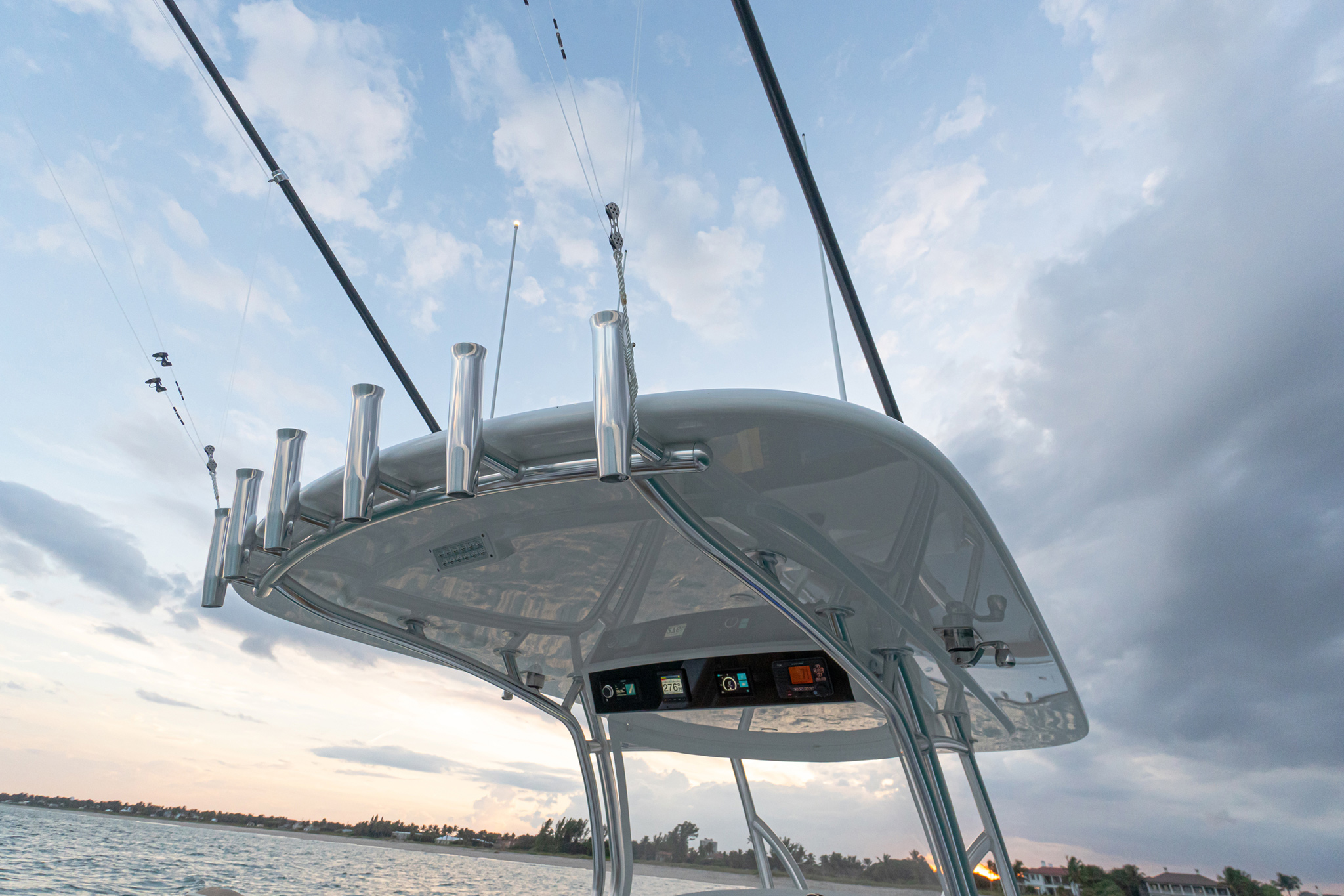 The fiberglass hardtop can be equipped with an array of accessories that heighten fishing capabilities, such as a six-rod rocket launcher, molded-in electronics and radar pods and Lumitec spreader lights. You can also get a custom fabricated fold-down marlin tower and fixed or telescoping outriggers from Gemlux or Rupp. A variety of Costa Marine covers will help you protect your investment. Covers for the entire boat, all of the engines and individual areas such as the console, helm seating and lounge are available.