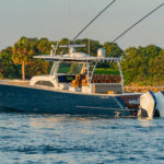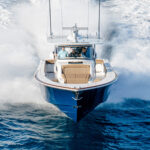 Like its stablemates, the V-46 is an outboard-powered center console that utilizes the patented Michael Peters Yacht Design (MPYD) double-stepped hull. “We’ve been extremely pleased with the performance of the first three boats,” says Design Manager David Wilson. “Our close collaboration with MPYD has continued, and we expect the same high level of performance in this boat.”