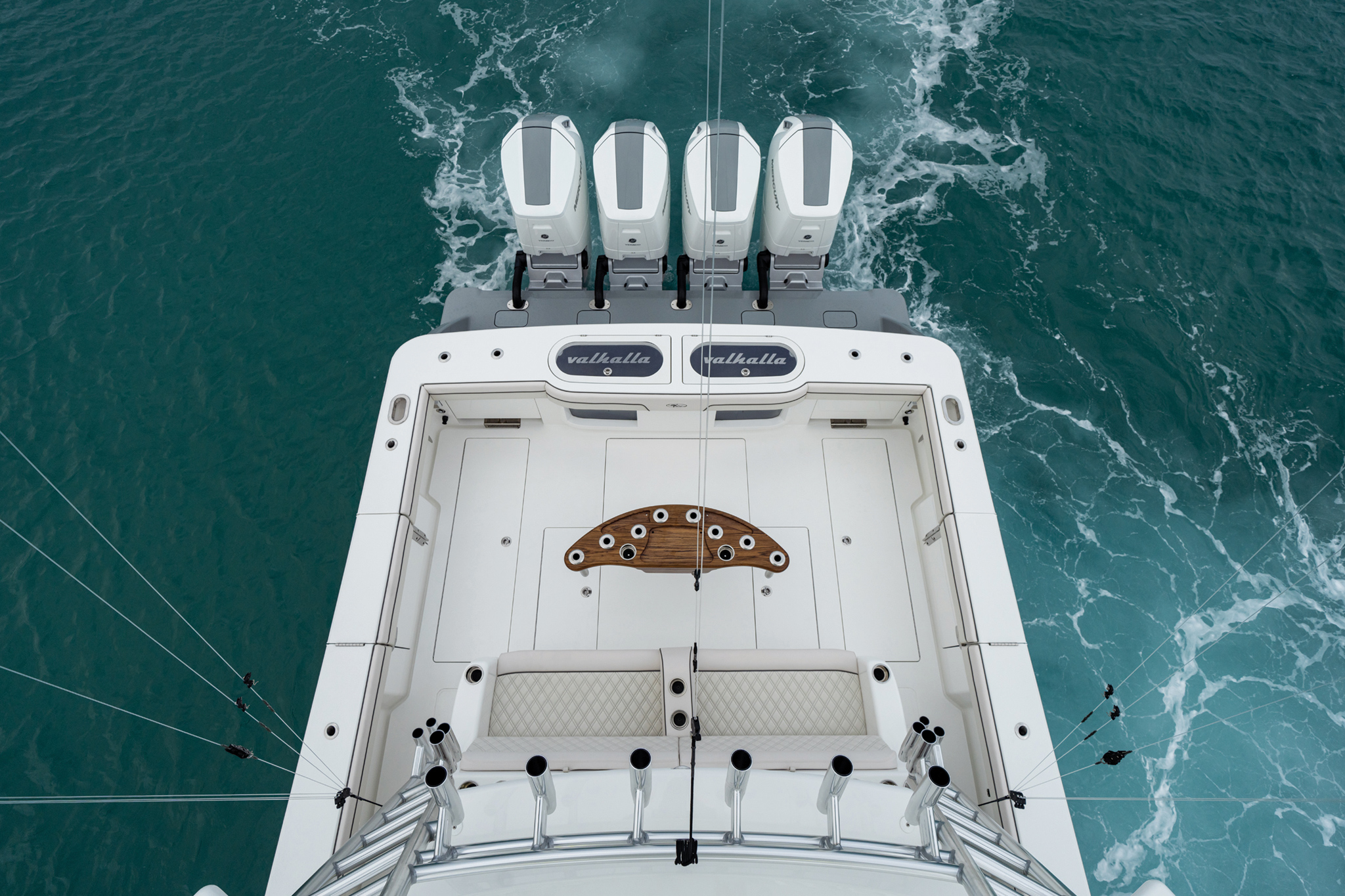 The Valhalla 55 rides on the patented Stepped-V Ventilated Tunnel (SVVT) from Michael Peters Yacht Design. “We’ve seen great performance with the other V Series models in all aspects – from excellent ride quality and efficiency to maneuverability and helm visibility,” David says of the double-stepped, deep-V running surface. “The V-55 is the largest center console on the market to utilize what we believe is the most advanced and effective stepped-hull design currently available.”