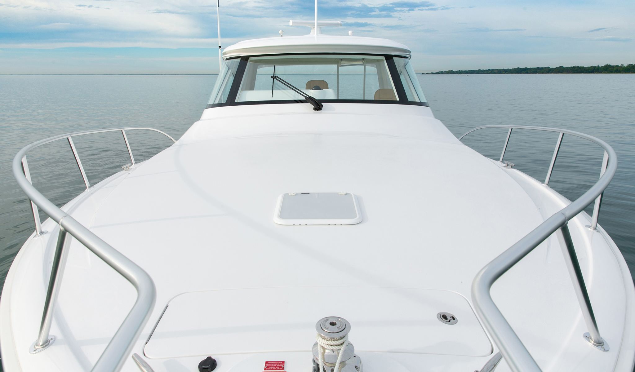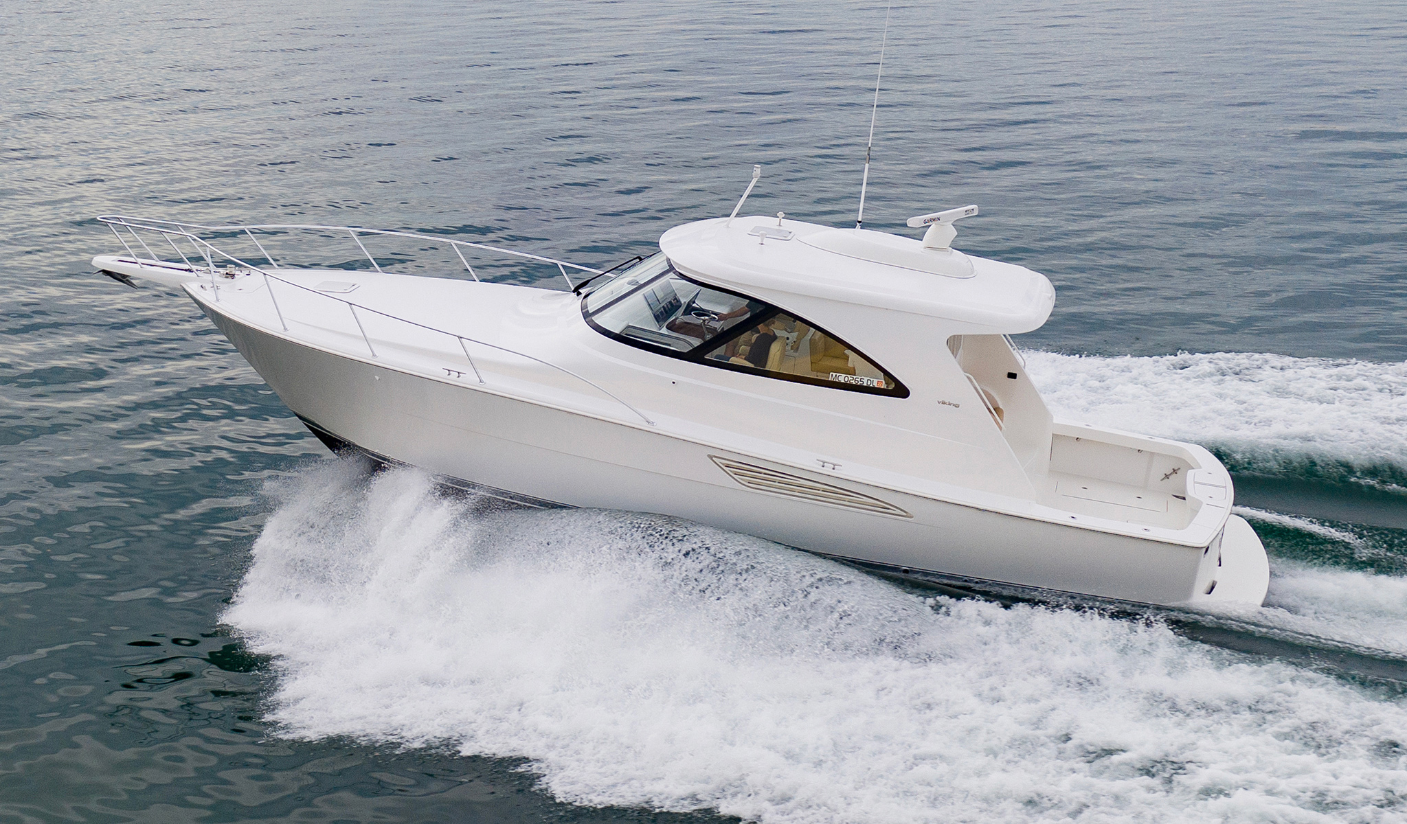 The Viking 44 Sport Coupe has a distinctive New England or Great Lakes flavor for cruising efficacy and includes a choice of a custom fiberglass mast for the radar and other antennas, or a customized radar arch. The 44 Sport Tower will be a sharp looking rig with its fitted Palm Beach Towers’ tuna tower. Add a pair of outriggers and this boat is an ideal ride for the sailfish circuit, cobia hunting and cruising throughout the Bahamas.