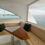 Twin MAN 800-hp diesels serve as the standard propulsion package. The engineroom, lazarette, forward bilge and anchor locker are all painted with Snow White Awlgrip for maximum visibility and easier maintenance. A Delta-T engineroom ventilation system, an oil exchange system and an Onan 13.5 kW E-QD (electronic quiet diesel) Series generator are just some of the standard mechanical and electrical equipment.