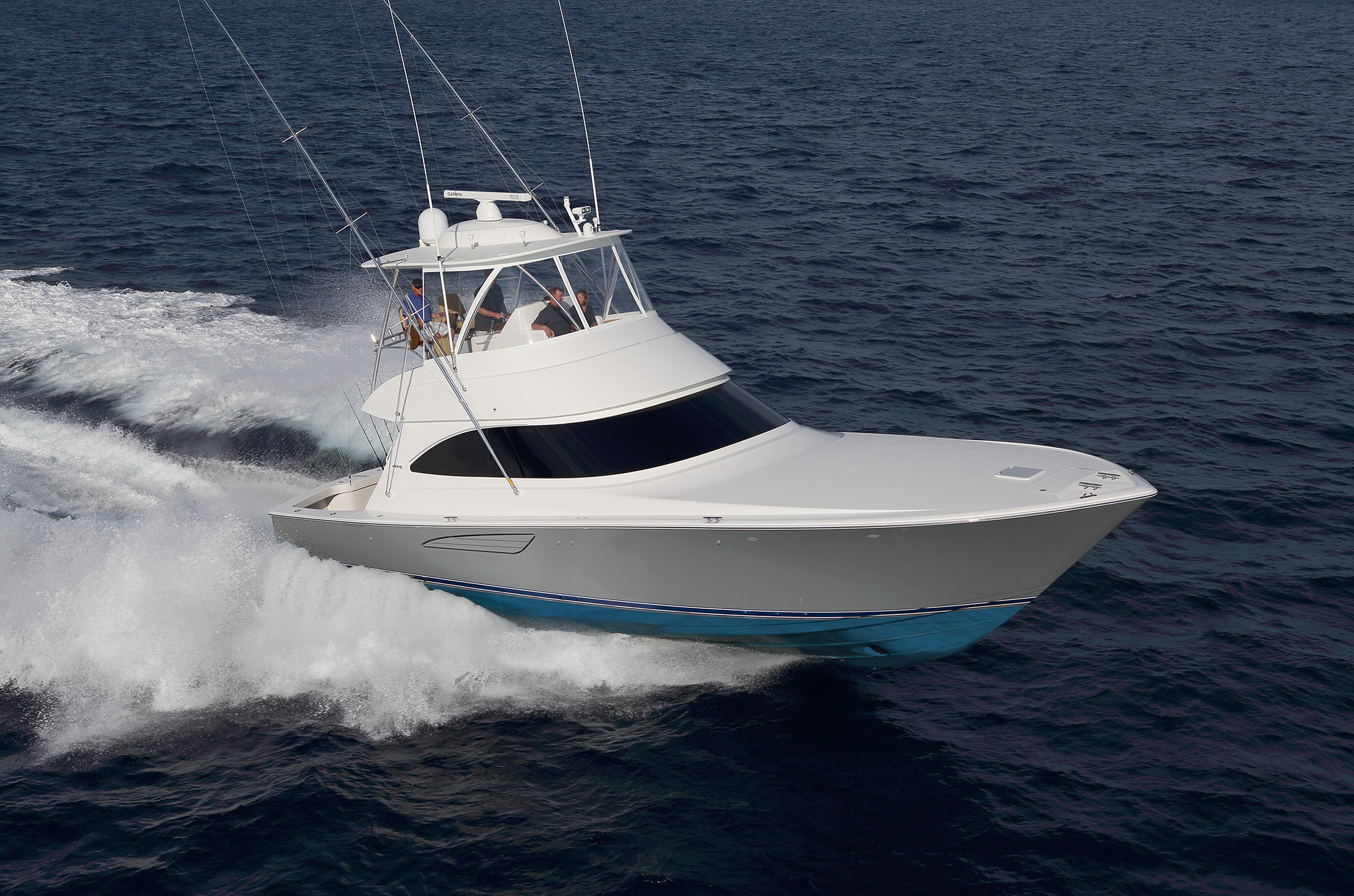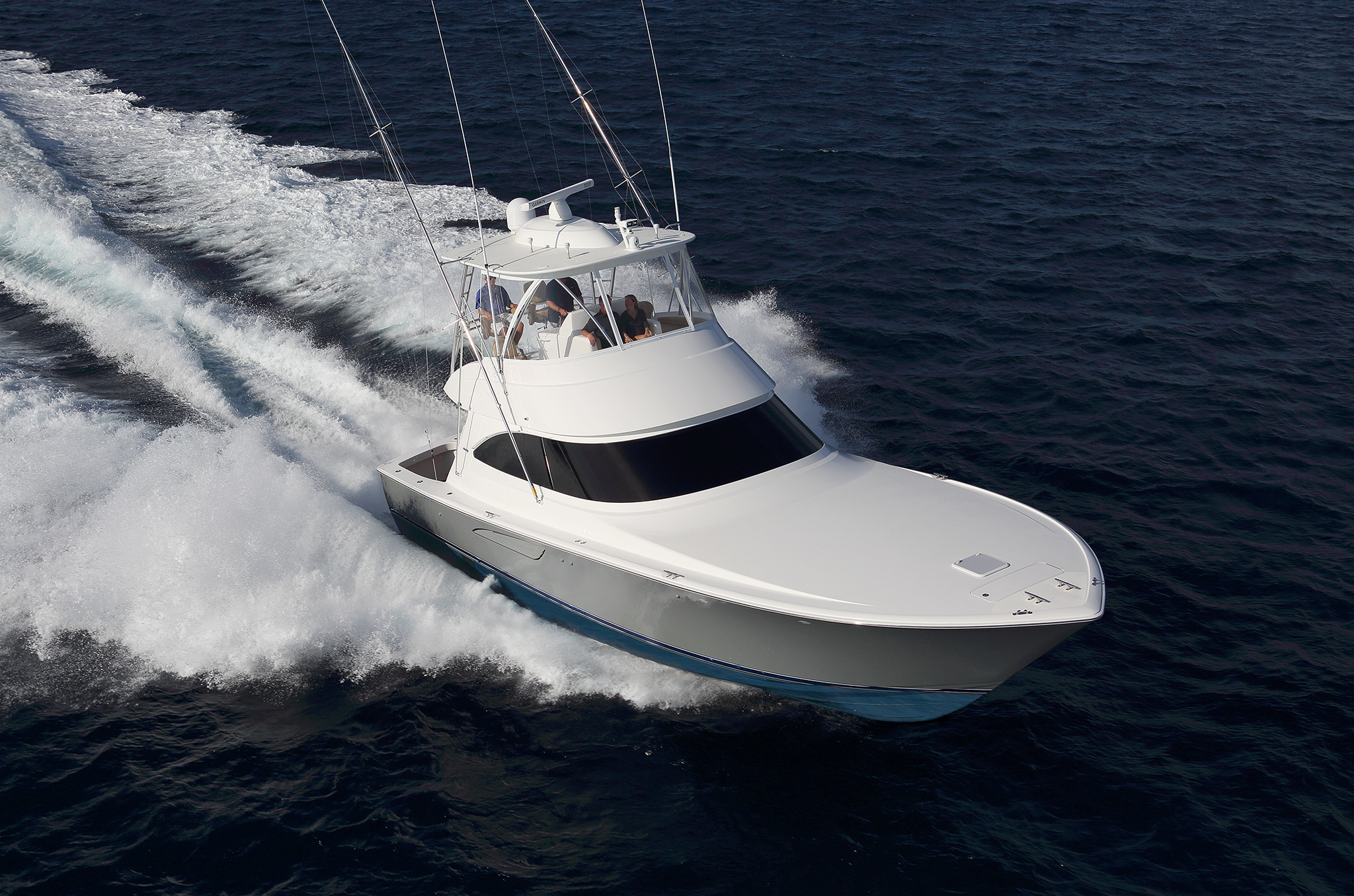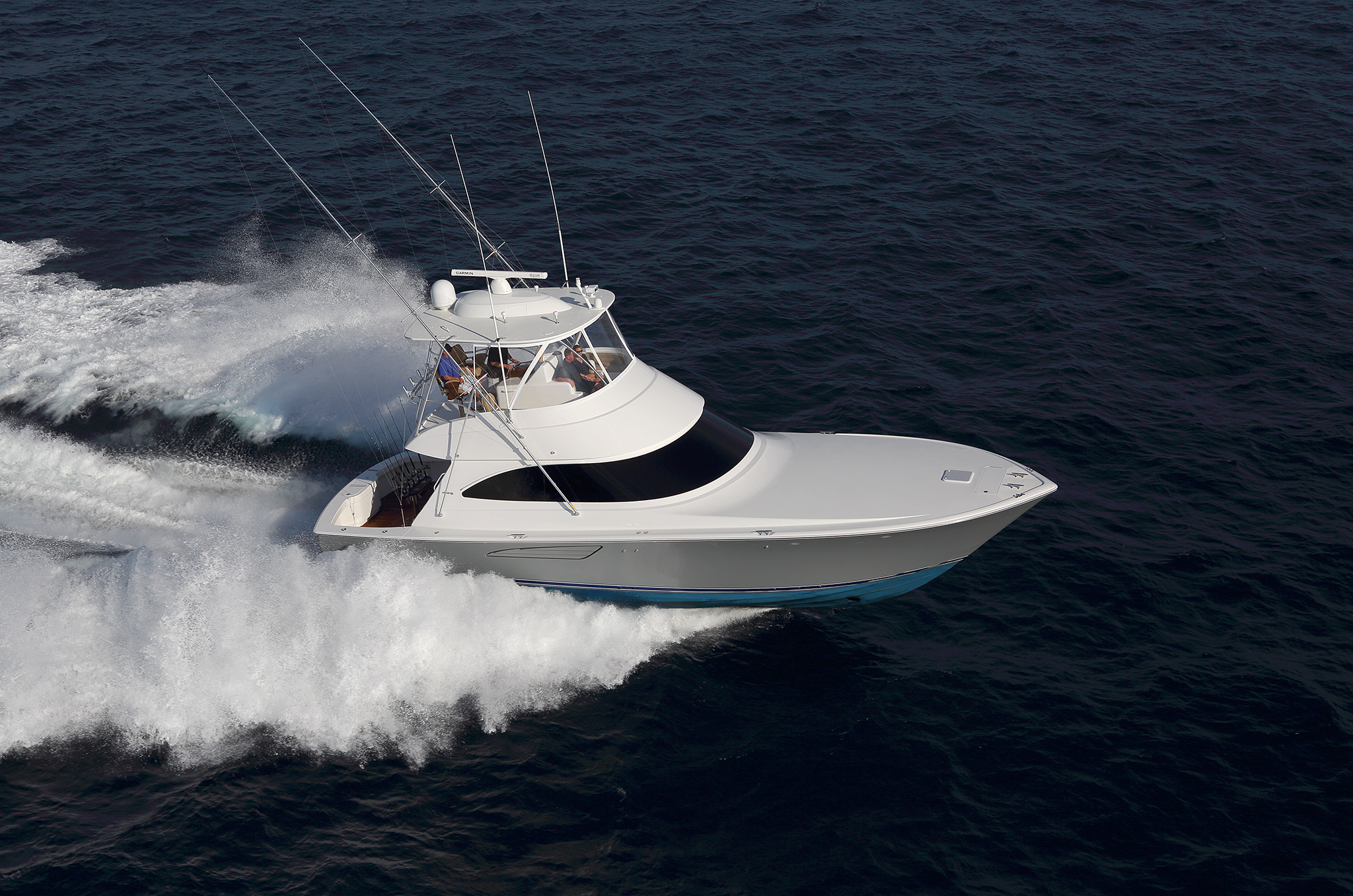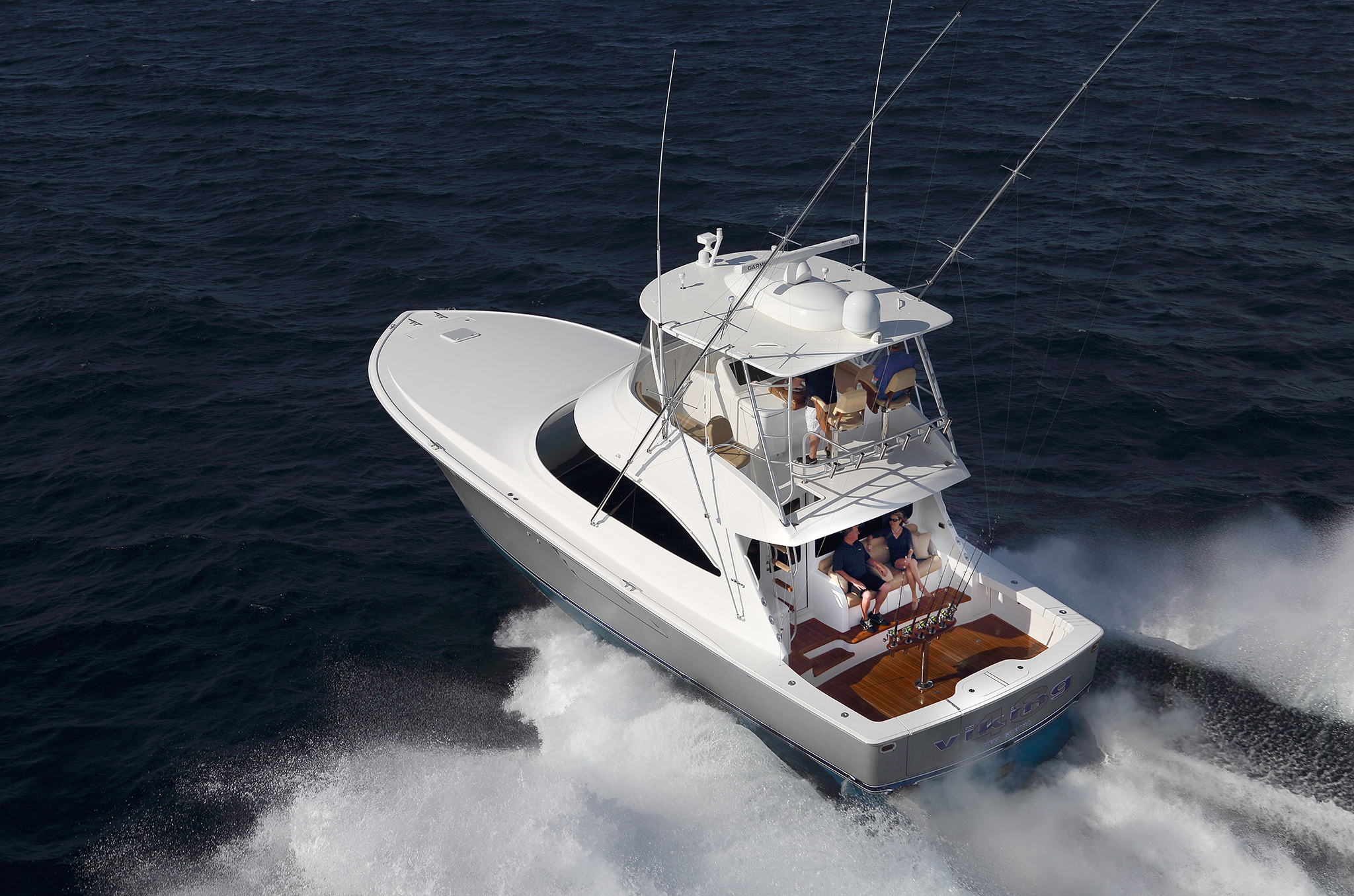 Building a better boat every day tells the story of each Viking yacht as it cruises along its evolutionary trail. When the first Viking 48 Convertible was launched in 1985 it was a powerful introduction that quickly went to the head of the fleet. Early models launched with J & T turbo-charged 6V92TA Detroit Diesels and were soon followed with 8V92TA making waves as the fastest in its class. The interior featured man-sized appointments, with a fashion plate of luxury details, rich teak joinery and opulent designer furnishings. This was a popular boat and we built it steadily for five years.