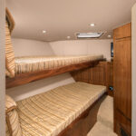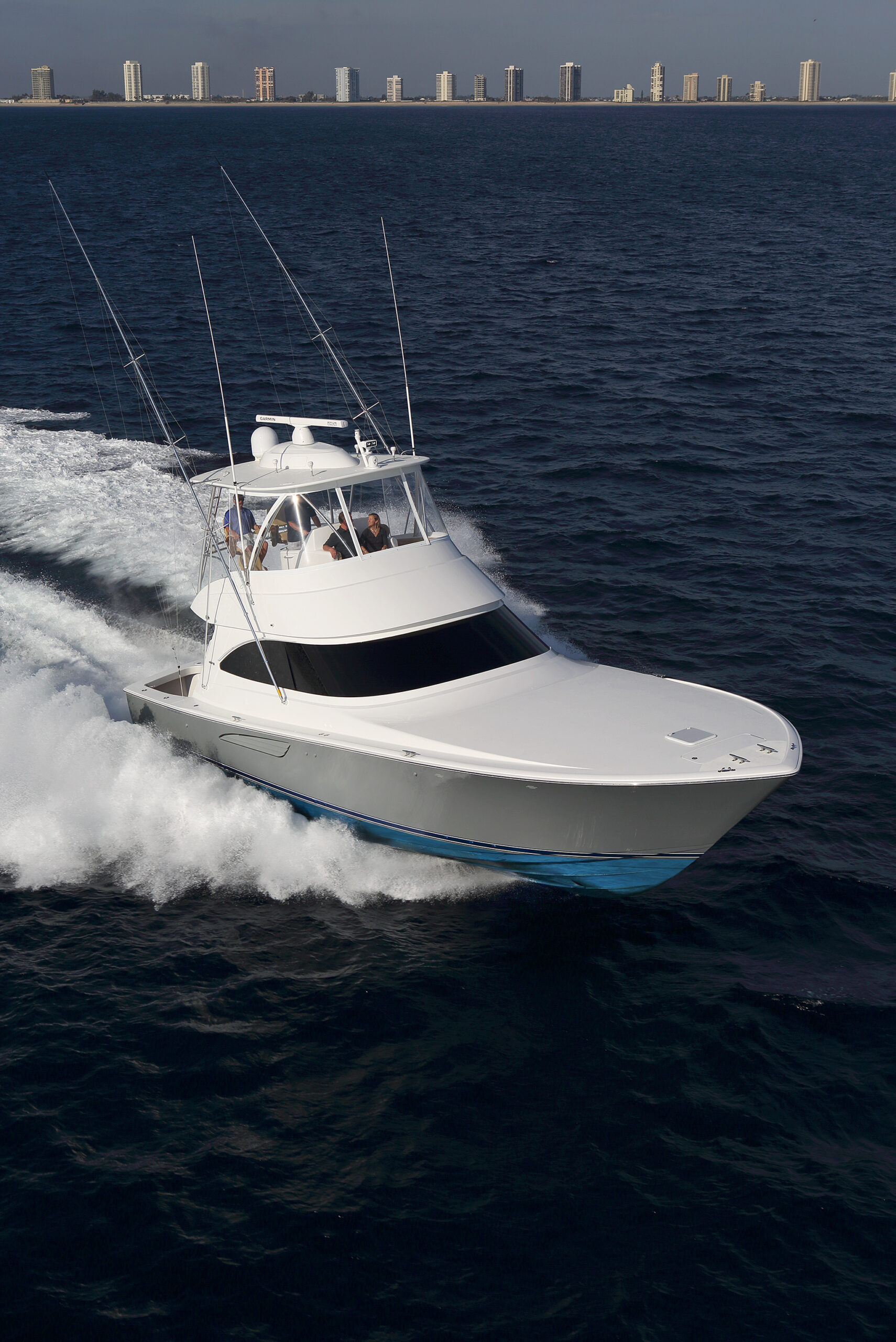 Another 48 Convertible appeared on the scene in 2002. It featured a completely different hull and topside, a newer fresher interior layout that was more accommodating for both fishing and cruising. Where the earlier 48C was a sharply defined and angular at every corner and turn, the second generation 48 Convertible was an ice cream smooth operator with endless curves that melded together in a singular statement of beauty. From the sheer to the bridge to the cockpit, there wasn’t a straight line on the boat. The flying bridge was twice the size of the previous 48C with more room fore and aft. The salon was even better with its U-shape galley, dinette, and a larger sofa. Frameless windows replaced the maintenance heavy metal frames of the previous boat. Two and three stateroom layouts made good use of space. Engineering improvements added more versatility like engineroom access from the cockpit, and with our subsidiaries Atlantic Marine Electronics and Palm Beach Towers now part of the Viking organization, this 48C could be delivered turnkey ready.