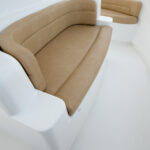 Fast forward to today and totally new 48 Convertible has joined the Viking product line. The exterior is sleek and powerful and the boat makes an impressive statement even resting at the dock. The wraparound black metallic windshield mask, window lines and flying bridge feature treatments reveal how far we have come with this evolutionary theme. The resin infused hull is beamy and carries its breadth farther aft for more interior room and a wider cockpit. The raked entry and forward chine are designed to pierce through head seas and divert spray downward. Convex hull sections add curvature and form to the running surface, while molded running strakes accentuate lateral tracking and maneuverability.