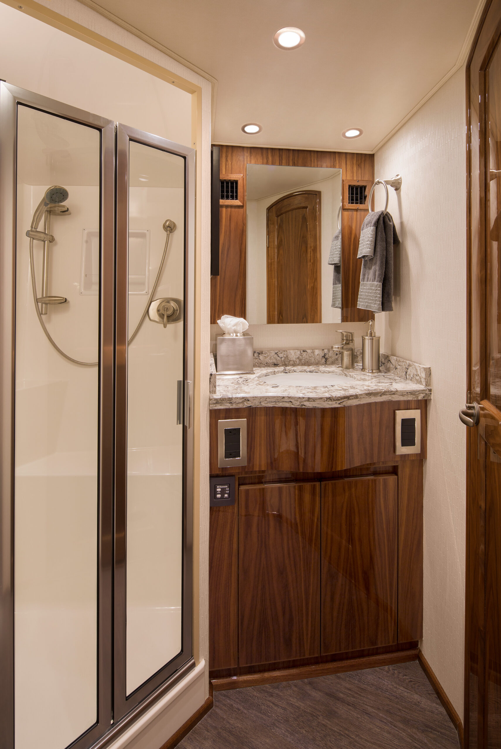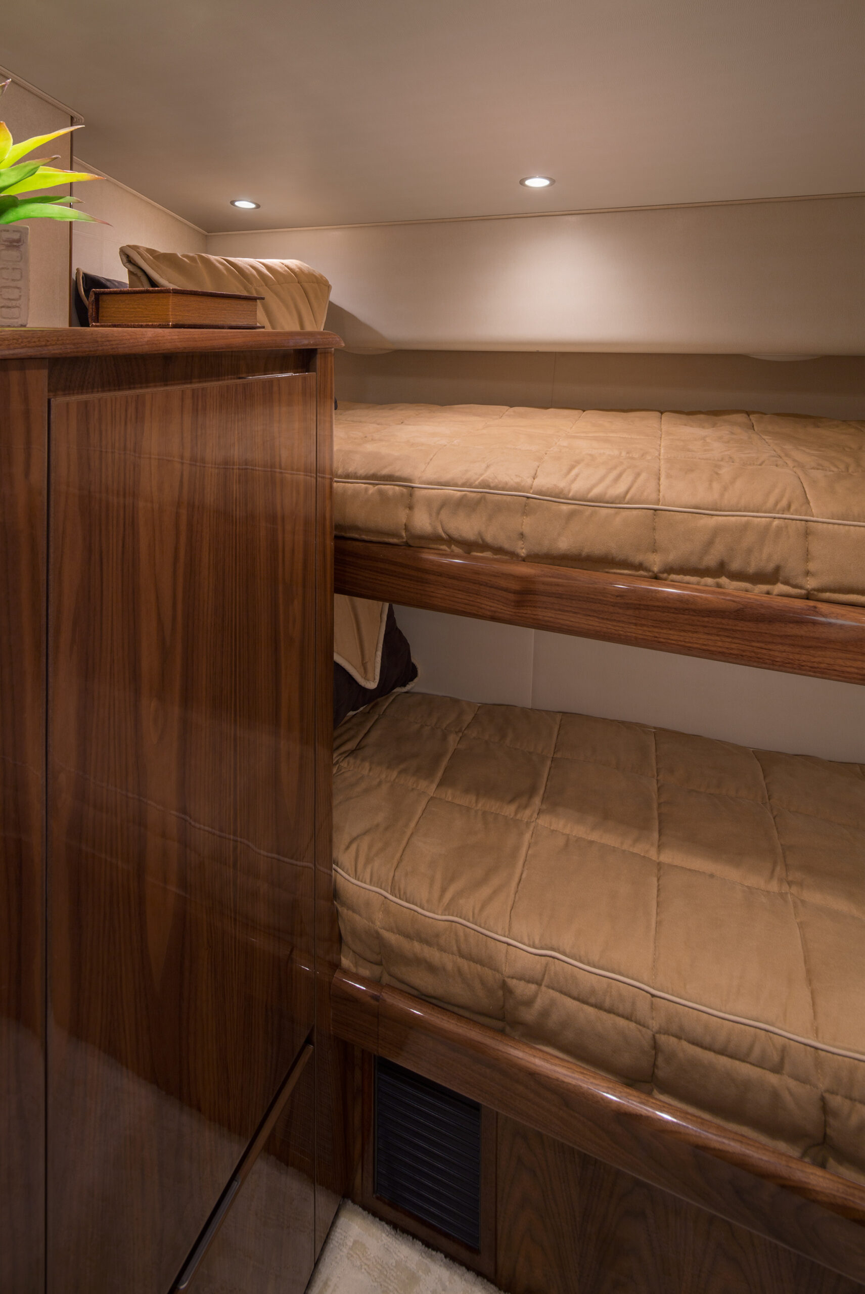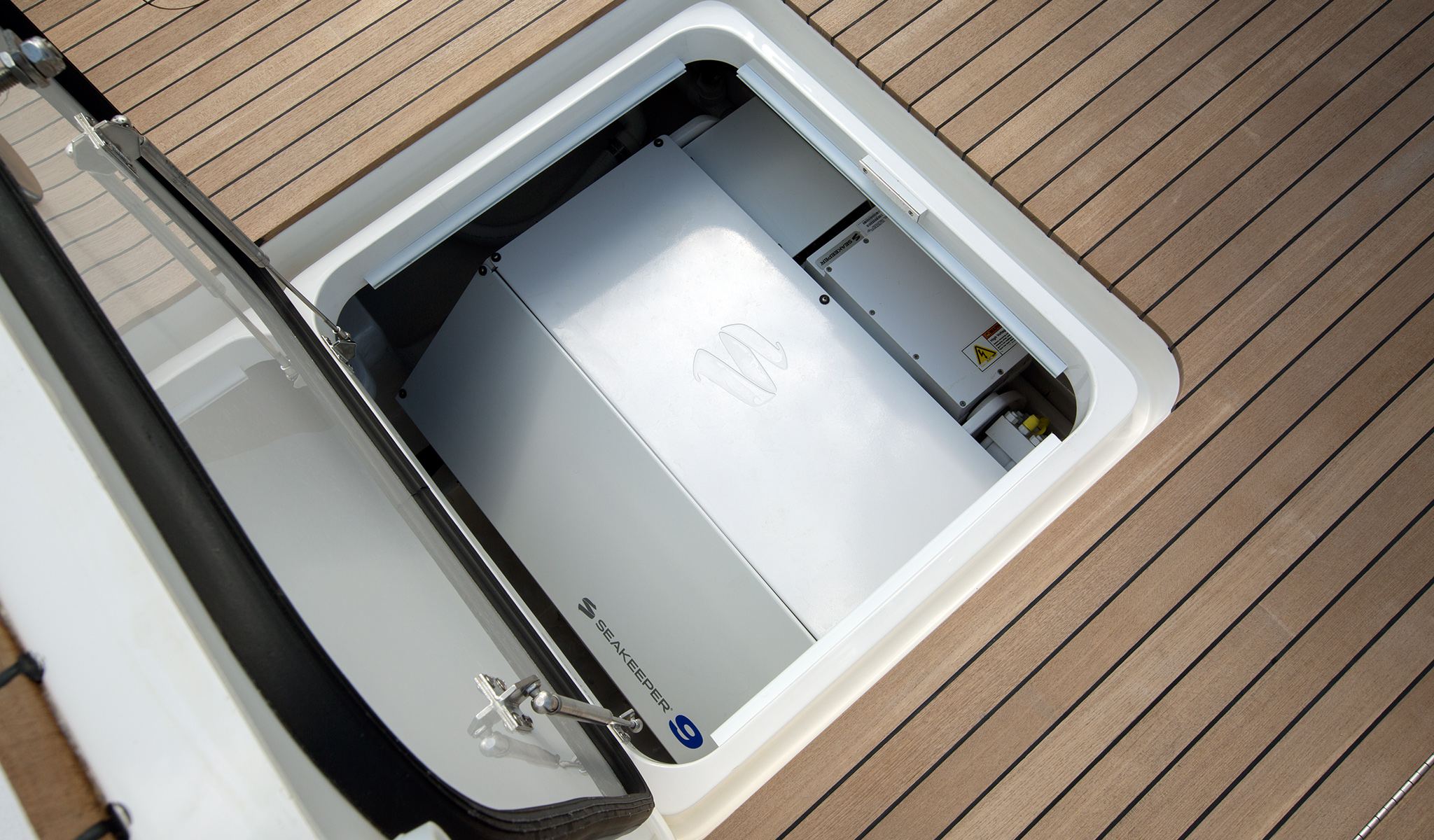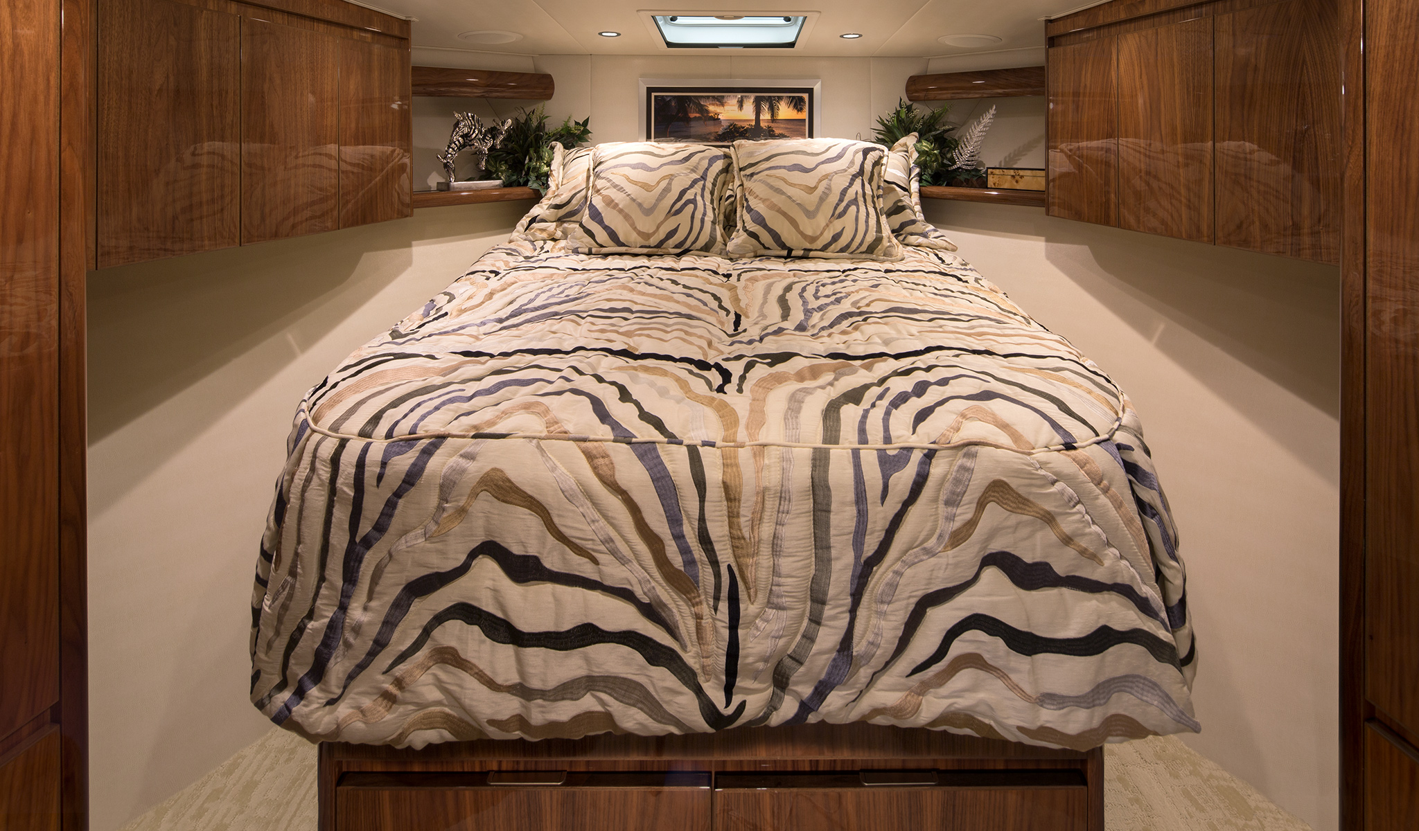 The Viking 48 Open, 48 Sport Tower and 48 Sport Coupe share a commonality of plush comfort and entertaining amenities. The 124 square-foot cockpit is ideal for fishing and other water activities. Stowage is ample throughout including a transom fish box, drink and bait coolers, recessed fish and stowage wells, and a split observation mezzanine. Space in the lazarette is provided for the available Seakeeper gyro stabilizer, which can be installed at the factory, or at a later date.