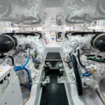 Systems include Delta-T ventilation and water suppression; automatically or manually operated fire suppression tied into the main engine and generator ignitions; oil changing; fuel transfer and pressurized freshwater. All mechanicals and equipment are installed with great attention to detail in an immaculate engineroom painted with Snow White Awlgrip for visibility and ease of maintenance. Below the water, a series of dedicated pumps for the air conditioning, live wells, washdown and other seawater-fed components have been designed, engineered and installed for durability and longevity.