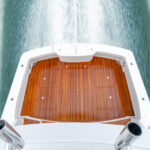 The hull is built with an engineered composite of fiberglass fabrics and coring that’s vacuum-infused with vinylester resin. Utilizing a calculated resin-to-fiberglass ratio, great stiffness and strength is brought to the structure while minimizing weight. The structural bulkheads and fuel tanks (which are customized to the shape of the hull) are also resin infused. The hull-to-deck is through-bolted every three inches and fiberglassed from inside for a rock-solid union.