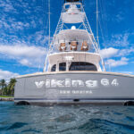 The 64’s unbroken S-shaped sheer flows gracefully from bow to stern. The swept-back black-masked windshield, pronounced hull and deckhouse feature lines and distinctive hull-side vents give the 64 an unmistakably Viking profile that is recognizable and revered around the world.