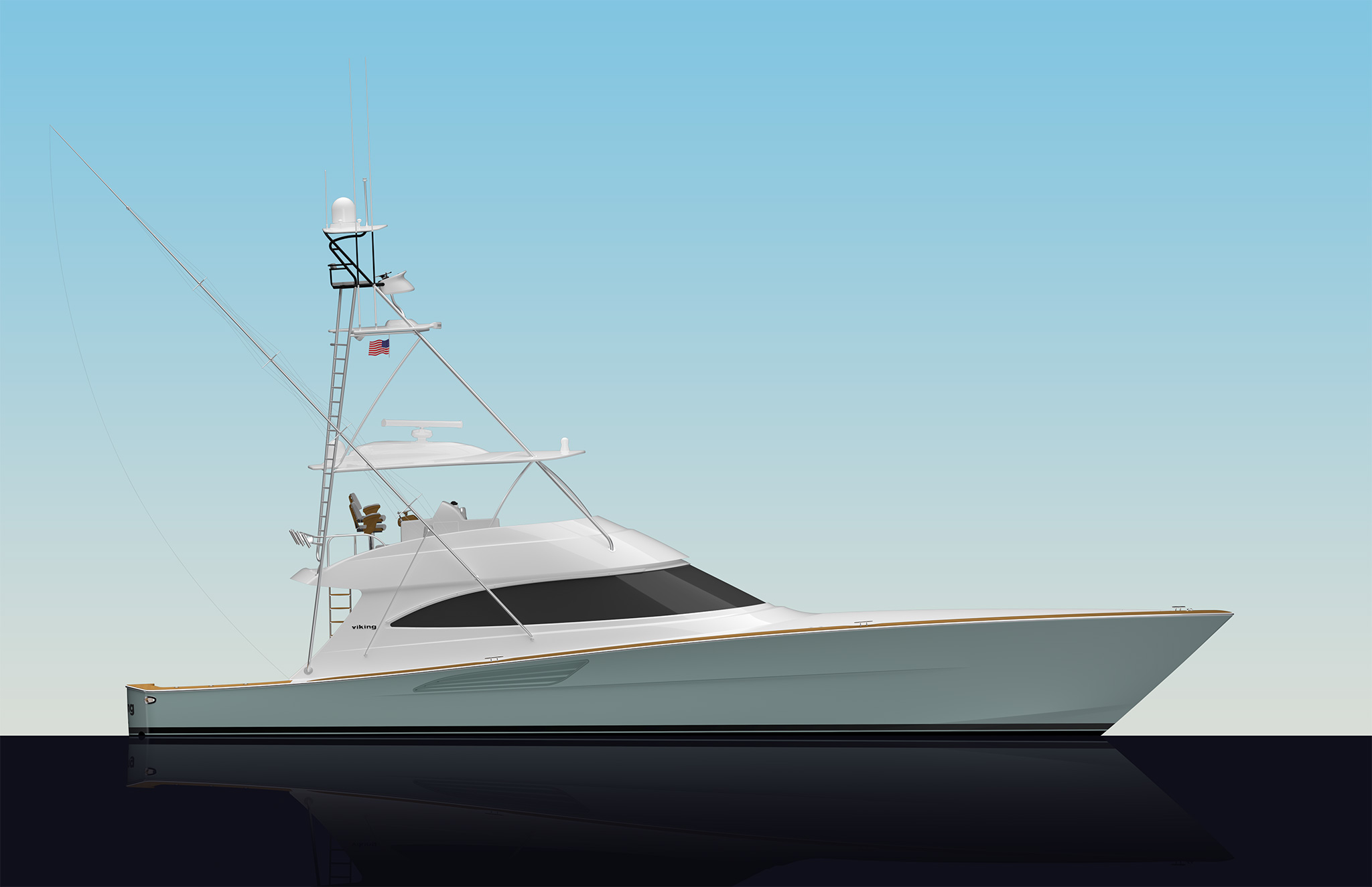 Viking’s subsidiaries Atlantic Marine Electronics and Palm Beach Towers can outfit the 74 Convertible with communication, navigation and entertainment accessories and a custom tuna tower respectively, which allows turnkey delivery from the factory.