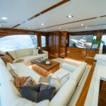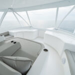 The 82 utilizes many proven systems, including digital switching from Octoplex as well as the Optimus Electronic Power Steering system. The yacht is also equipped with composite seacocks, eliminating corrosion, increasing longevity and decreasing weight. In addition, the 82 is engineered for many systems previously provided as custom installations that are now offered as optional and standard components, such as omnidirectional sonar, multiple water makers and crushed ice machines, tuna tube bait systems and extensive refrigerated storage boxes.