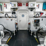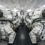 From an engineering standpoint, the Viking 82 is peerless. Painted in a gleaming Snow White Awlgrip, the engineroom provides excellent visibility and ease of maintenance. There’s plenty of space to access all sides of the 16-cylinder powerplants and numerous components and controls. The engines are mounted to the stringers that are reinforced with integrated aluminum for a strong, clean installation.