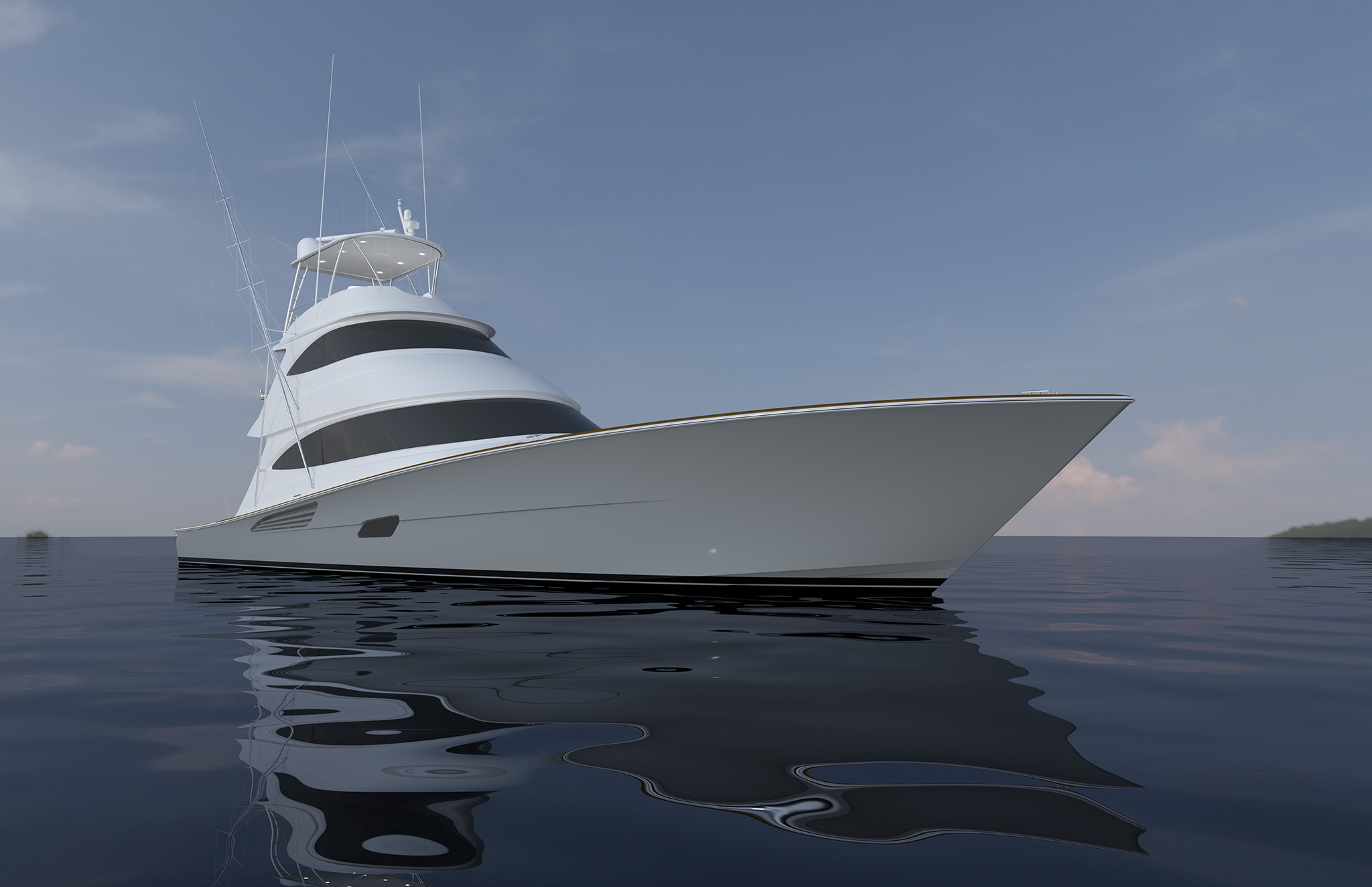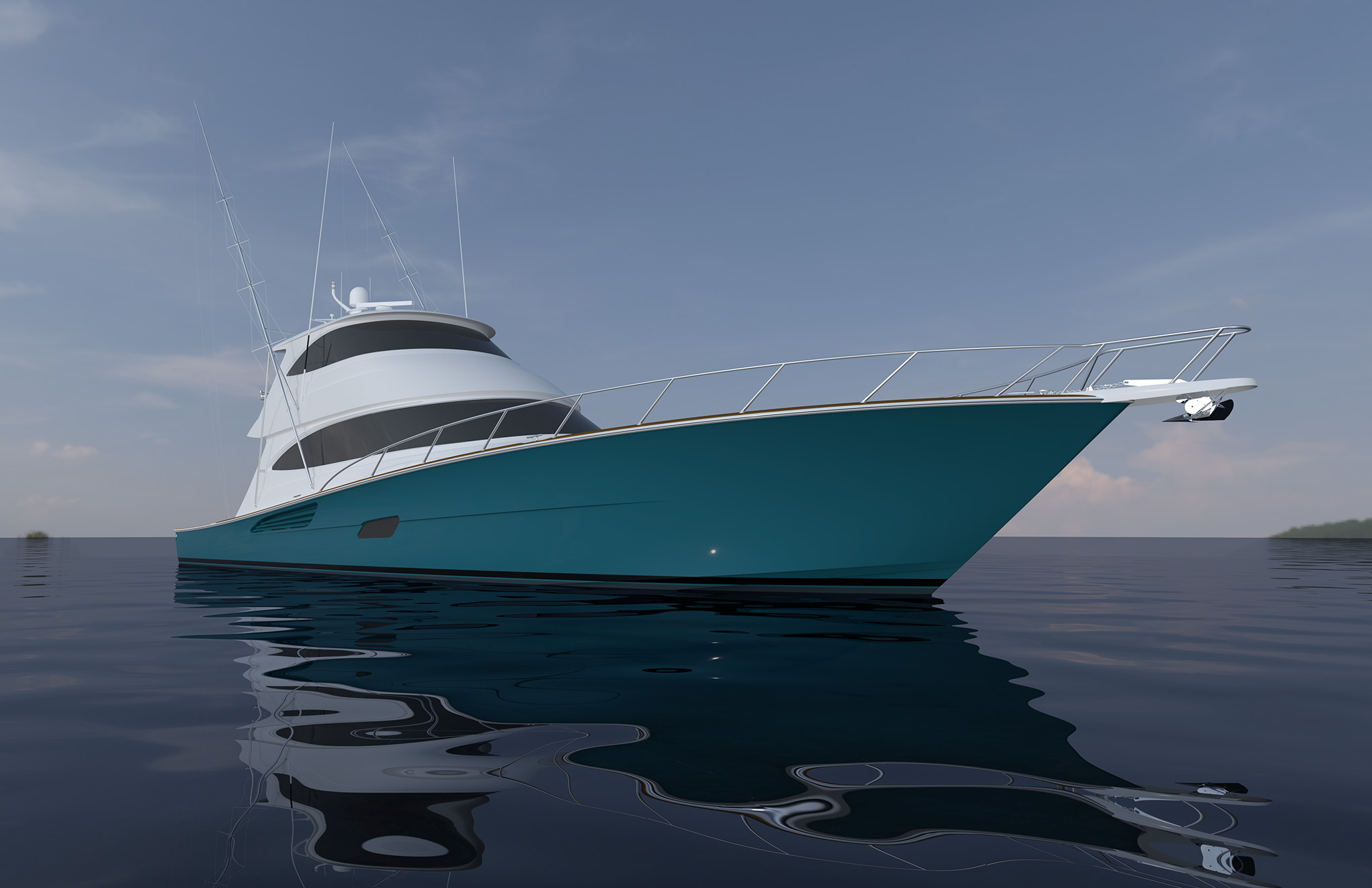 The Viking 82 will also be offered with the Advanced Viking Propulsion System (AVPS), which utilizes struts and rudders with modified or “twisted” shapes that minimize hydrodynamic resistance, improving performance. “The strut is designed to improve the in-flow of water to the propeller, while the rudder minimizes resistance in the flow of water from the propeller,” says Viking Naval Architect Joe Snodgrass. “These improvements allow us to use a larger propeller and gain speed.”
